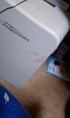しかも、何気に机下に放置されてる電源の入ってない小型冷蔵庫にまで血が付いている始末。